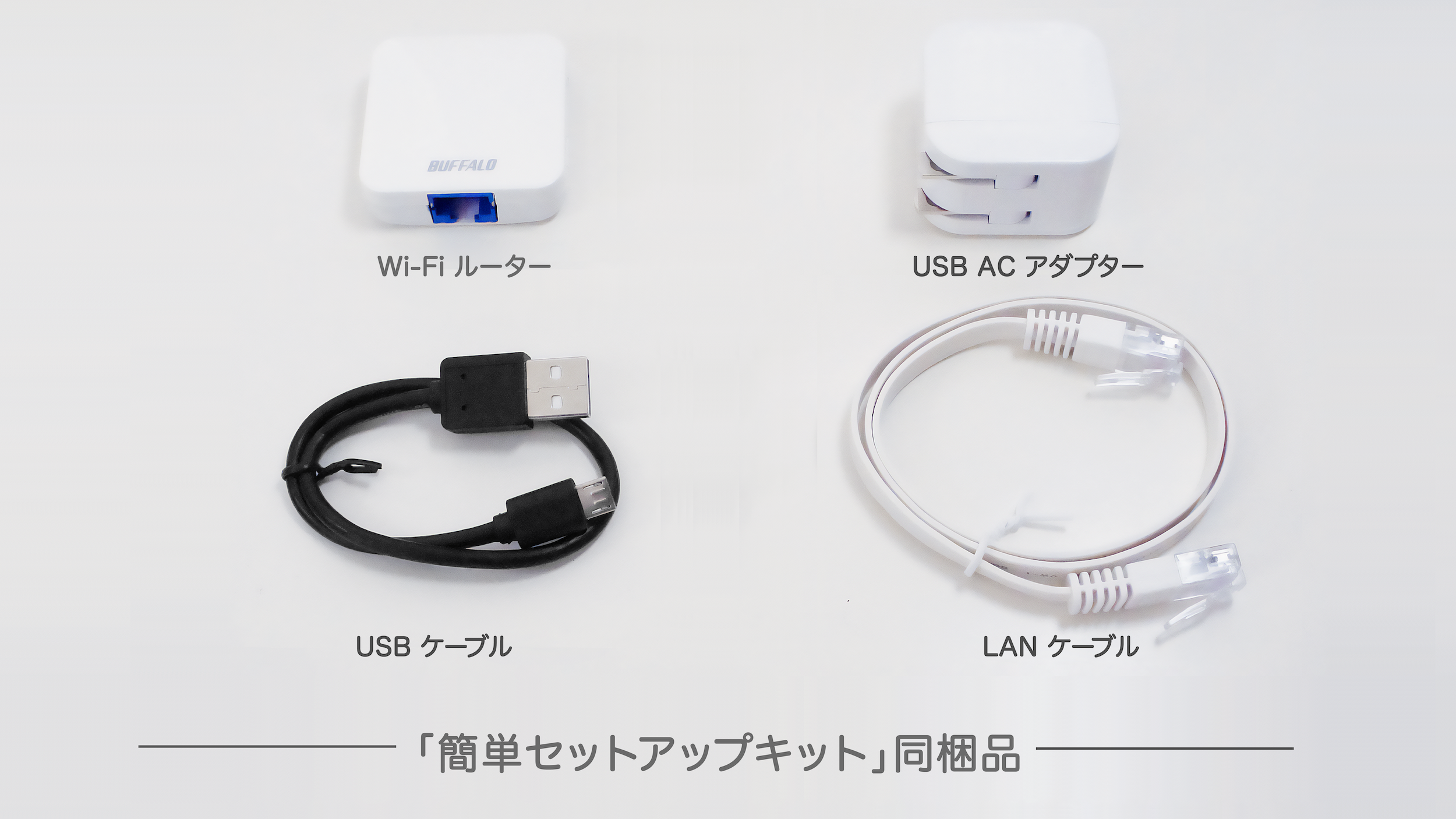 1. 簡単セットアップ機を電源につなぎます。付属のUSBケーブルを接続し、USB-ACアダプタをコンセントに接続してください。(USB-ACアダプタは付属していません)